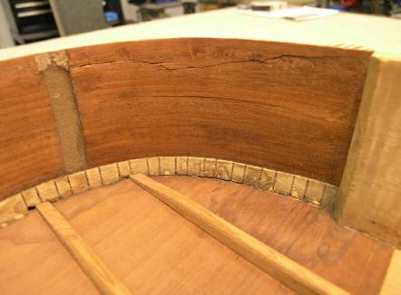 Inside view of lower bout cracks
