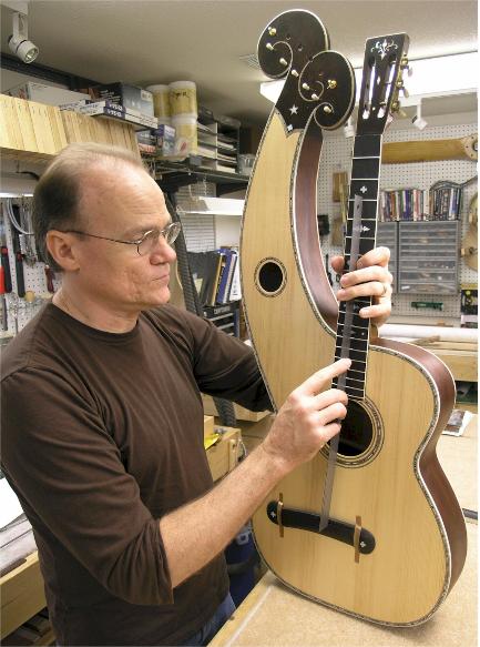 has held a harp guitar and he gives it a go.